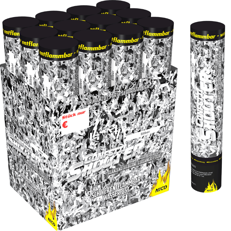 Die Confetti-Shooter mit Wow-Effekt sorgen für beste Stimmung, großen Spaß und gute Laune! Durch das Drehen des unteren Teils des Shooters, wird das Konfetti mittels Druckluft bis zu 5 Meter weit in die Höhe geschossen.